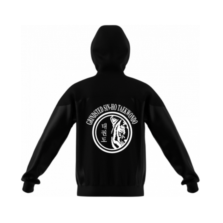 Adidas overtrækstrøje med klubmærke foran, logo på ryggen og en sponsor på det ene ærme.
